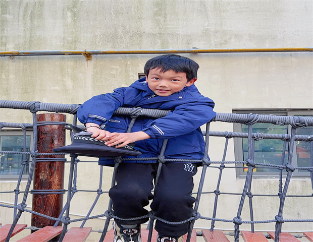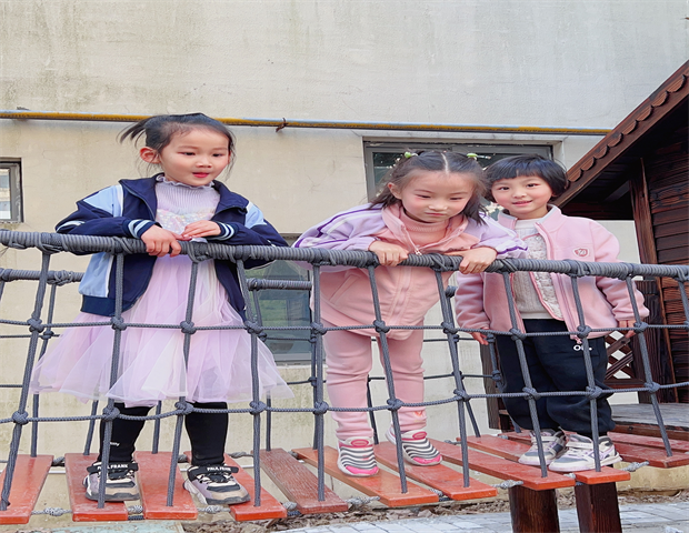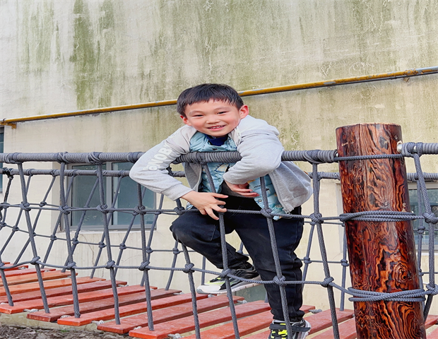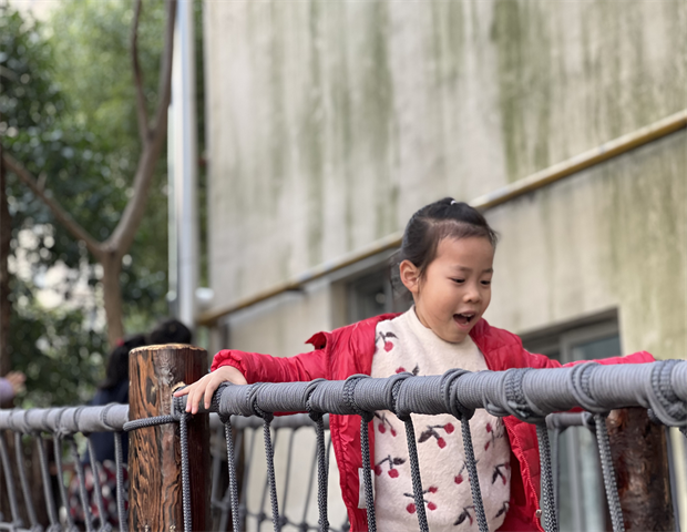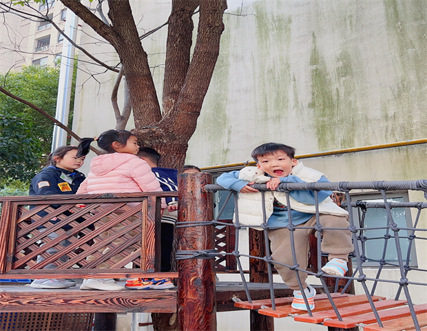 学校里有一座连接在两棵树之间的荡桥,跟我来看一看吧!