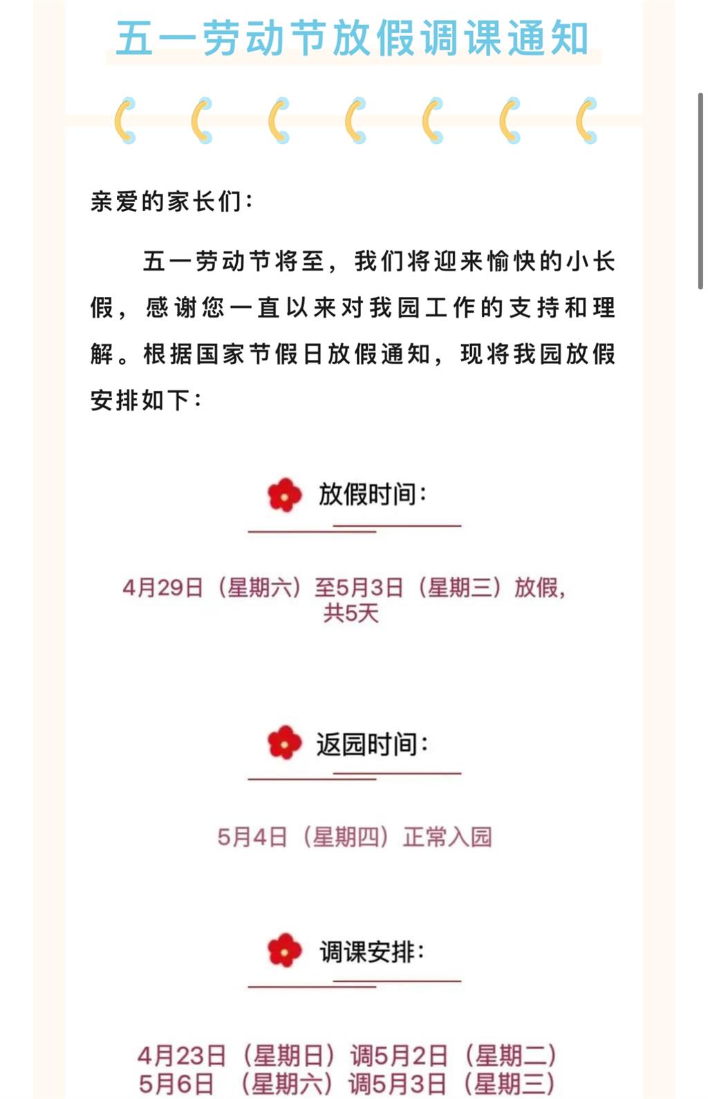 五一劳动节放假调课通知