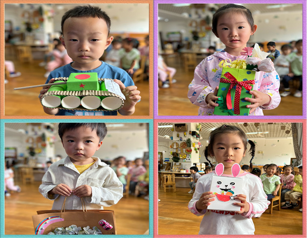 在爸爸妈妈的陪伴下,我们用纸盒做了很多作品,有小汽车、飞机,让我们一起来看看吧!