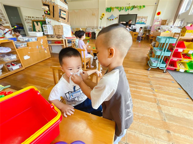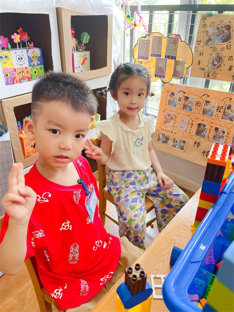 在幼儿园里,我认识了新朋友,我们还在一起搭积木呢~