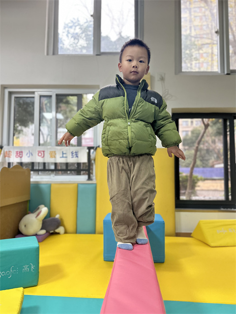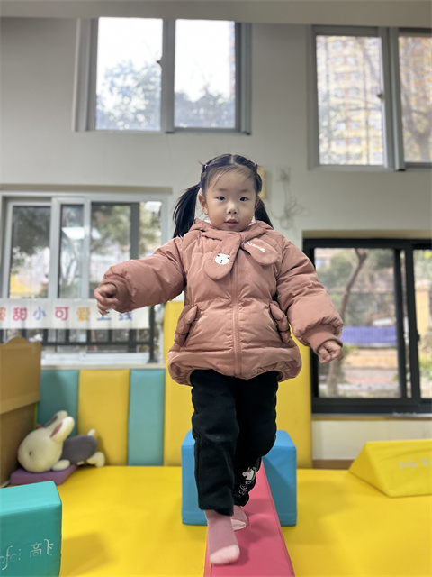 在平衡木上,我张开双臂,两脚交替着慢慢向前走。