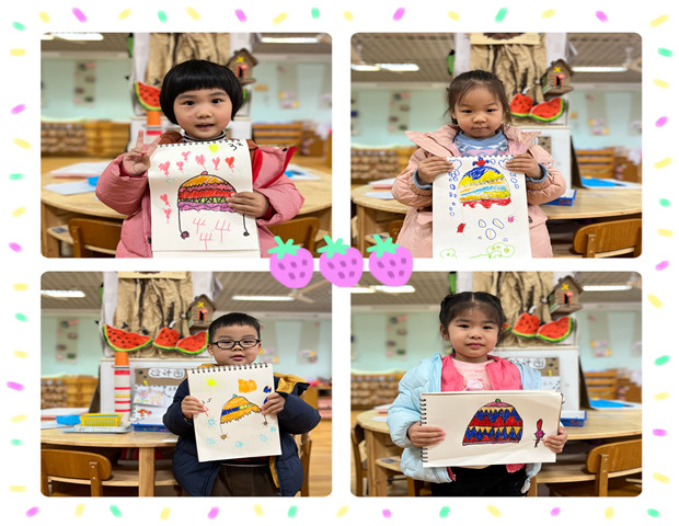 冬天来了,天气越来越冷了,小朋友们都戴了帽子围巾,那让我们一起来画一画漂亮的帽子吧,看看,每个小朋友的创意都不同呢!