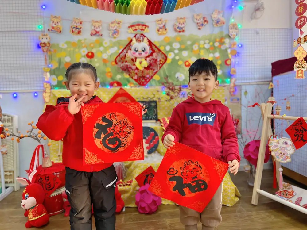 元旦是辞旧迎新的节日,寄托着人们对过去一年收获的庆贺和即将到来的新的一年的期盼,因而是个充满喜庆、充满温馨的节日。为了迎接元旦,我们为孩子们准备了拓印模板、海绵戳、红色宣纸、黑色颜料,小朋友们一起认识“福”字,亲手印一印“福”,把龙年的福气带回家,和家人们一起感受红红火火的年味!