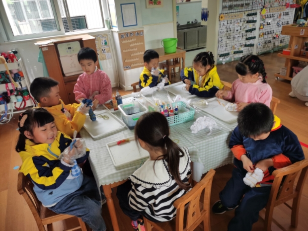 本周我们开始了布艺扎染活动,折叠的方法不同,染出来的作品也不同,看我们的作品多好看呀!