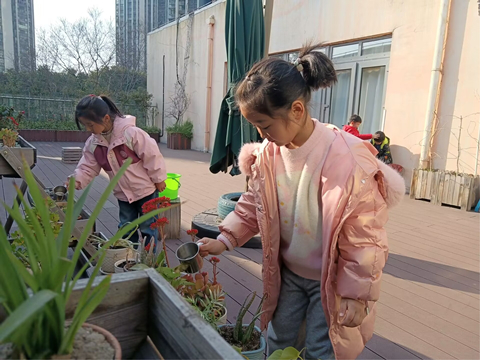 还记得我们上周种植了小苗苗吗,现在我们要开始给他们浇水啦!只有多喝水,才能长高高哦!