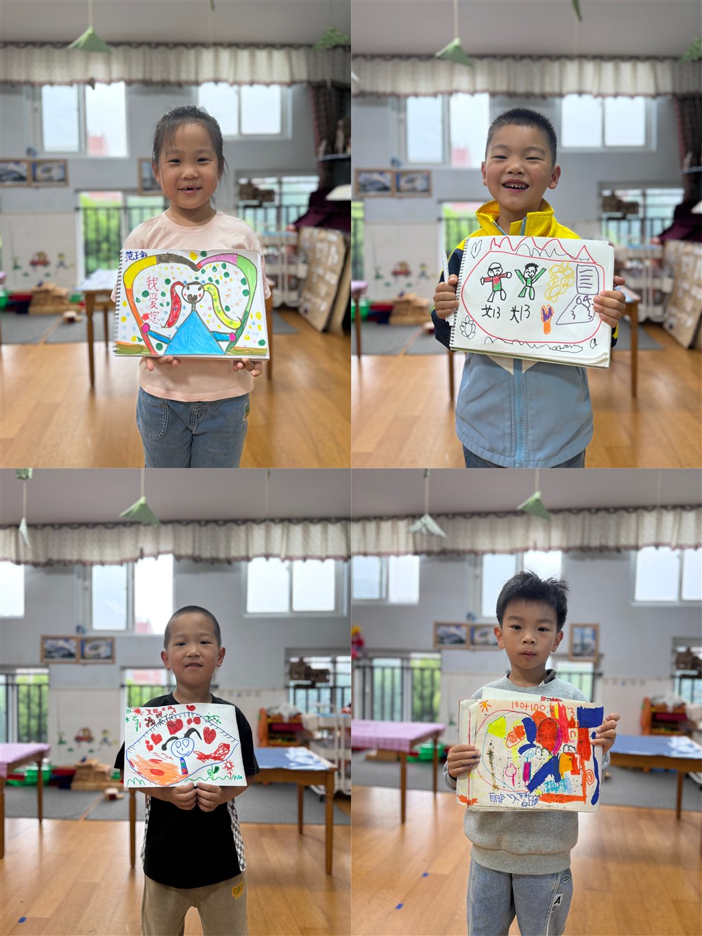 随着母亲节的脚步悄然临近,宝贝们决定用一种独特又温馨的方式来表达对妈妈的感谢。那就是自己制作一幅独一无二的画像送给妈妈还有奶奶外婆,他们积极的讨论到“我的妈妈头发是大大的卷。”“我奶奶头发是小小的卷。”“我姑姑现在也是妈妈了,我要画一幅送给她。”……