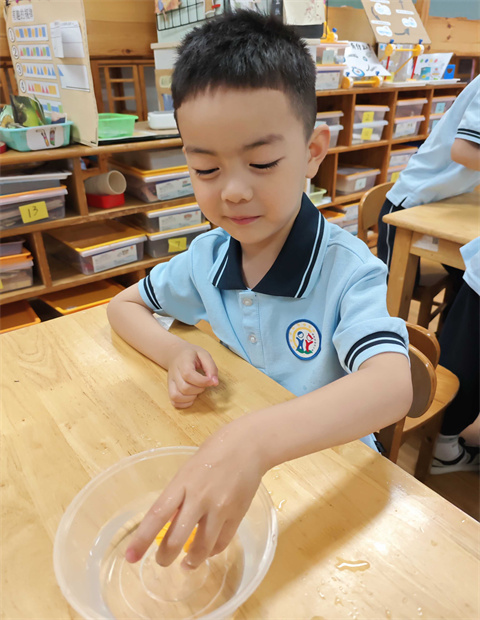 这个星期的课堂上,孩子们玩起了“沉与浮”的游戏。他们在教室里寻找我们常见的物品,将他们依次放进水里,观察物品的沉浮。
