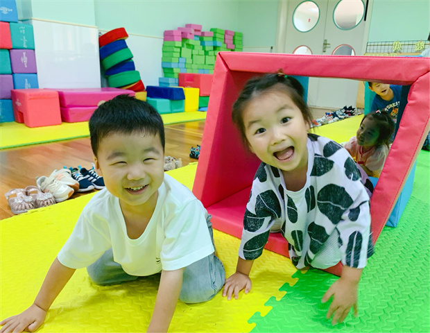 小朋友们来到体操房,和老师一起摆放各种器材,然后开始游戏,锻炼了走、跑、跳、爬、钻等基本动作技能。小朋友们都很投入在运动中!