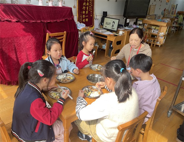 今天是王宇哲奶奶进园陪餐哦,小朋友们闻着香喷喷的饭菜,吃得可香啦!