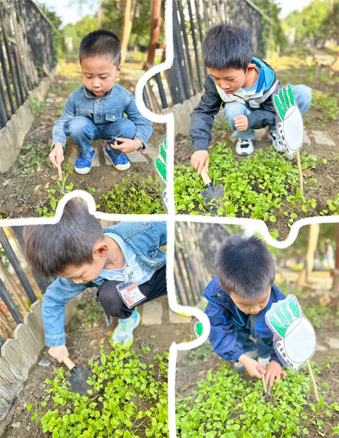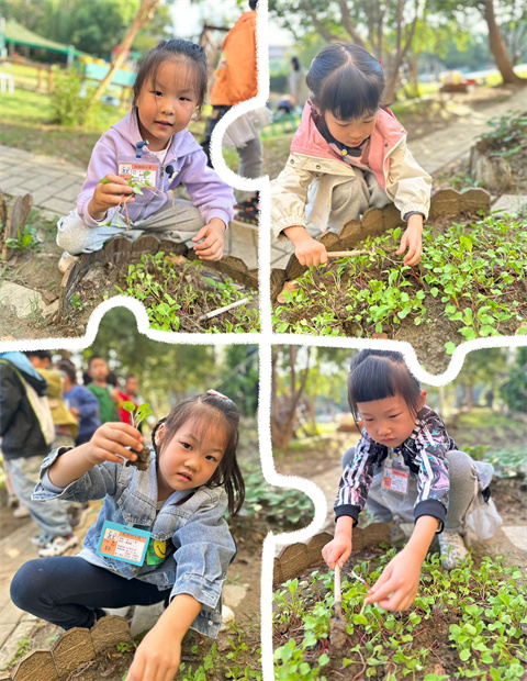 萝卜的小种子发芽啦,长出了好多的小苗苗。苗苗太多会抢走营养呢,我们要移栽一些苗苗到植物角去!
