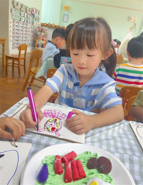 说了有好多好多的面条,让我们一起把它画下来吧。