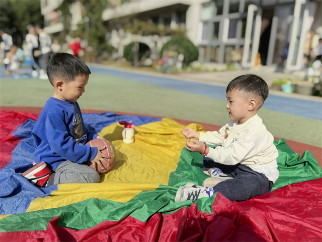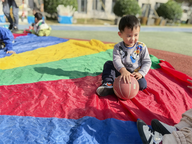 阳光正好,我们和老师一起玩了有趣的彩虹伞,我们在彩虹伞上玩了滚球,玩了抖球,玩了大风吹的游戏......