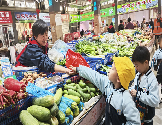 秋天是各种蔬菜水果成熟的季节,在《美丽的秋天》这一主题中,国宾园中班的孩子们初步了解了秋天的各种蔬菜水果。《纲要》中指出“ 教育活动的组织与实施过程是教师创造性地开展工作的过程,教育活动内容要贴近幼儿生活,要充分利用自然资源和社区教育资源,扩展幼儿生活和学习空间”。为增强幼儿的社会实践能力,丰富生活经验,国宾花园幼儿园中班的孩子们开启了一场有趣的买菜之旅。