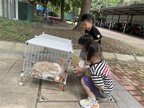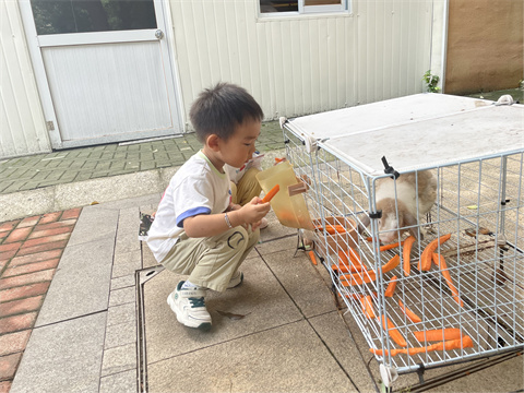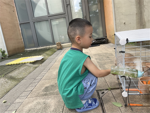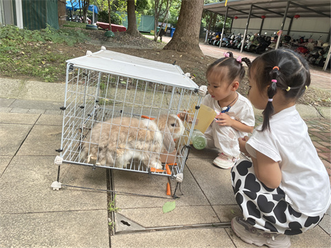 今天我们一起去照顾小兔子,我给他们准备了好吃的胡萝卜,他们吃的可香了,对我不停点头,像是在说“谢谢你”