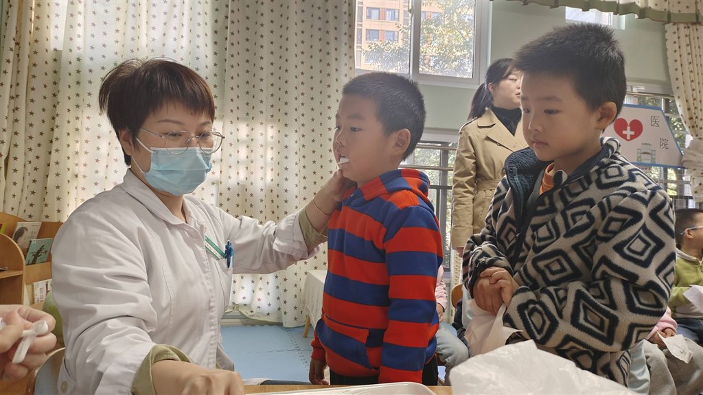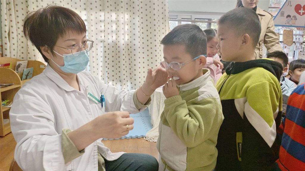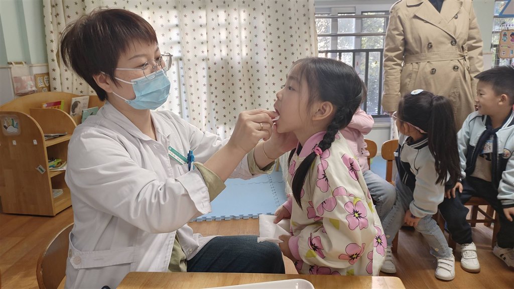 今天河海卫生院的医生来给我们做了防龋离子检查,保护牙齿从小做起。