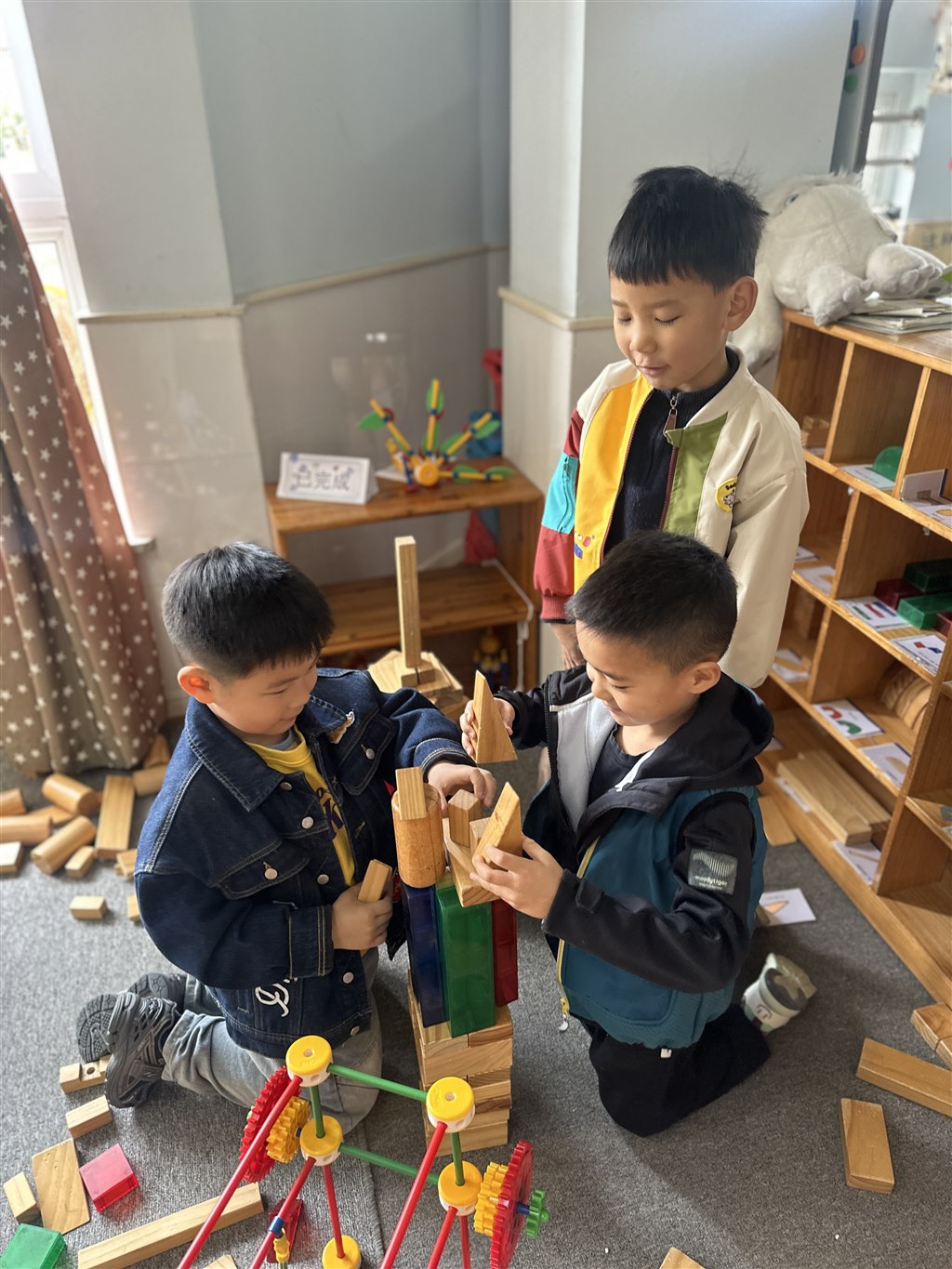班级里传来了欢声笑语,原来是今天的区域活动开始了,孩子们各自投身于自己喜爱的游戏活动中。建构区几个孩子围坐在一起,小手灵巧地搭建着各自的城堡和高塔。而益智区一群孩子正围成一圈,在进行下棋比赛,每个孩子都沉浸在自己的游戏世界里。
