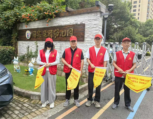 本周由我们中七班的家长进行护校活动,家长们穿着红马甲带着红帽子,拿着旗帜站在马路两边维护我们小朋友上学放学安全,为你们的付出点赞!