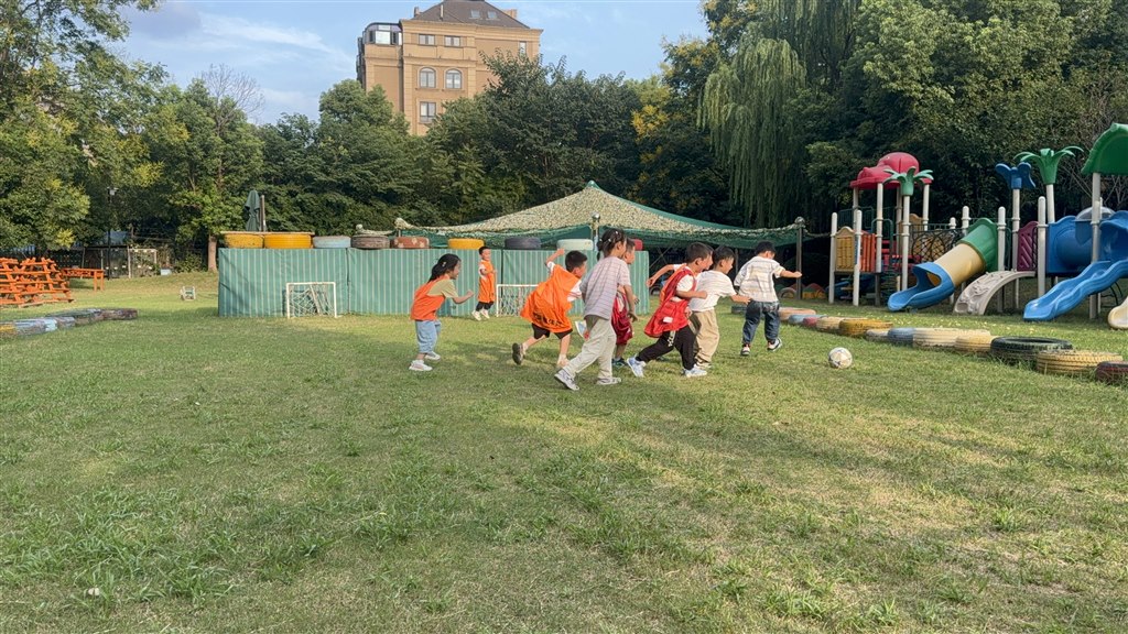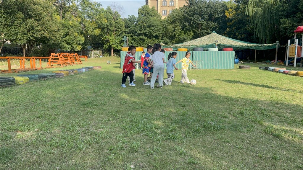 今天是我们踢足球的日子哦,瞧我们踢的多投入,多开心!