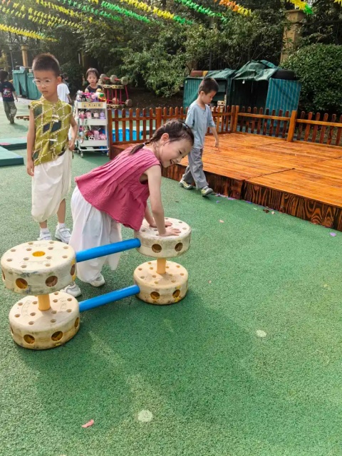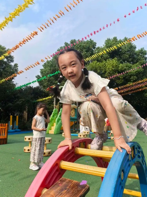 接下来就是孩子们最爱的器械时间啦,攀爬,翻跳,高度平衡……