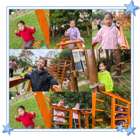 户外换到新的场地啦——攀爬区。在攀爬区,我们一起走平衡、荡秋千、玩攀爬架,户外游戏真的太好玩啦!