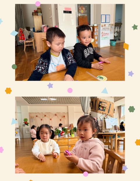 我们学会了用橡皮泥来做棒棒糖哦,真有意思!